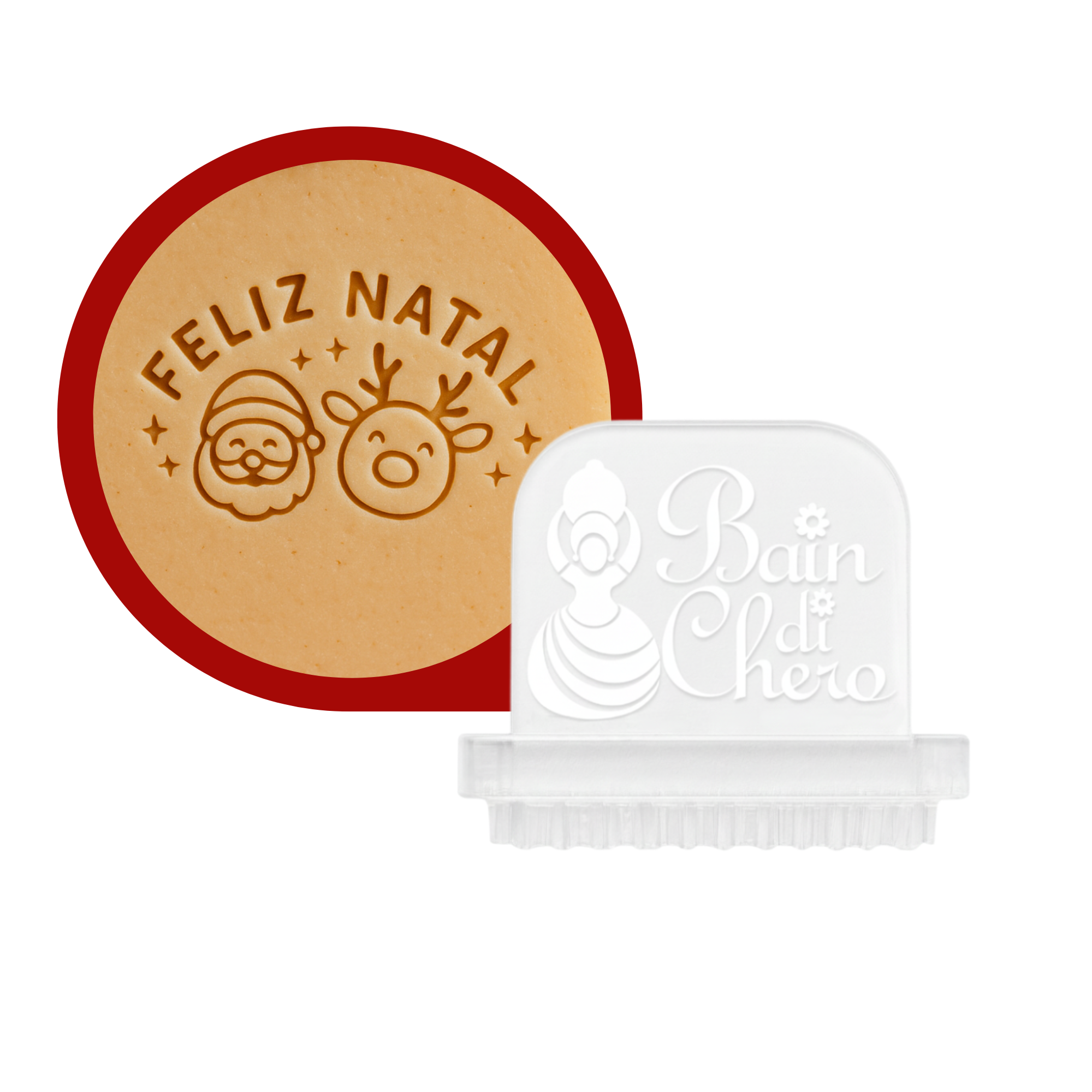 Carimbo Acrílico para Sabonetes modelo Natalino - Feliz Natal Papai Noel e Rena